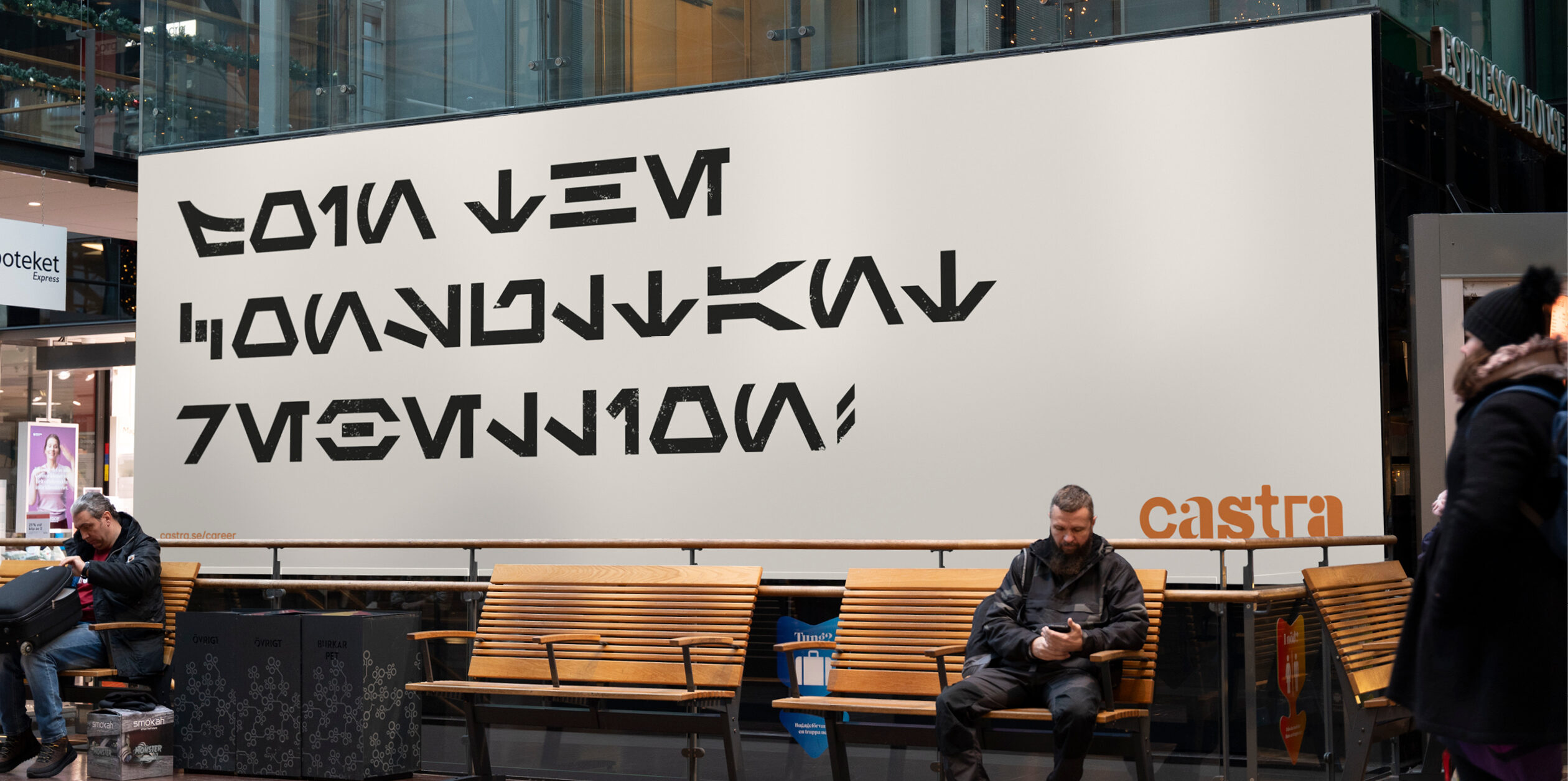 IT-konsulter älskar sci-fi/fantasy och problemlösning. De är helt enkelt nördar. Och ju större nörd, desto bättre IT-konsult. När vi fick uppdraget att locka den vassaste talangen till Castra bestämde vi oss för att sålla agnarna från vetet redan i rekryteringskampanjen – och gjorde den på de fiktiva språken klingonska (Star Trek), sindarin (Sagan om ringen) och galaktisk standard (Star Wars). Fullkomlig rappakalja för den stora massan, men en oemotståndlig utmaning för rätt kandidat.